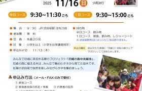 日時:11月15(土)10:00~16:00(少雨決行 警報発令時は中止:中止の連絡は、尼崎21世紀の森ウェブマガジンでご案内します)