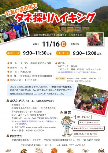 ◆活動内容:武田尾でのハイキング、タネ採り、自然観察