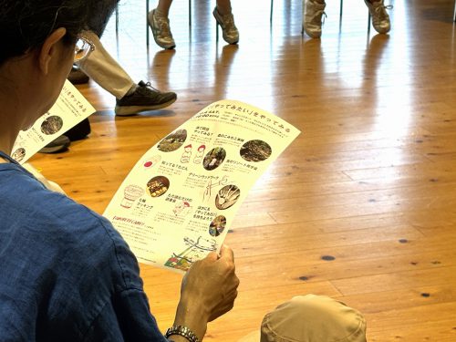 10月に尼崎の森中央緑地の森とかやぶき民家で実施する「こもれびキャンプ」に向けて、チラシ案を見ながら、何ができそうか話し合いました。