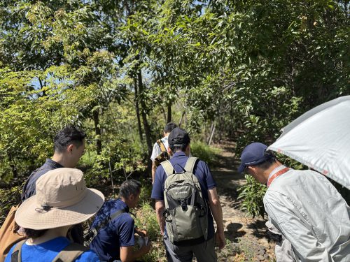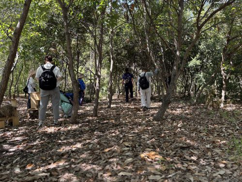 アイデア出しの後は、実際に会場となる森を見てみようということで、暑い日差しが降り注ぐ道を歩いて、森へ行きました。