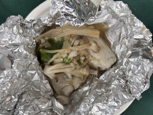 武庫川渡船さんが、サゴシという魚を提供してくださいました!守シェフによるレシピでキノコを添えたホイル焼きを作りました。