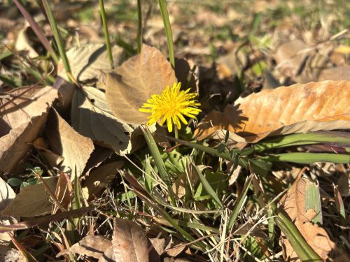 森の会議からの帰り、公園も冬の景色だなぁ~と落ち葉に目をやると、落ち葉の中にタンポポの花が。割と暖かい日が続いていたから狂い咲いたのでしょうか?本格的な冬の到来前にタンポポに出会い、来年の春が待ち遠しくなってしまったのでした。