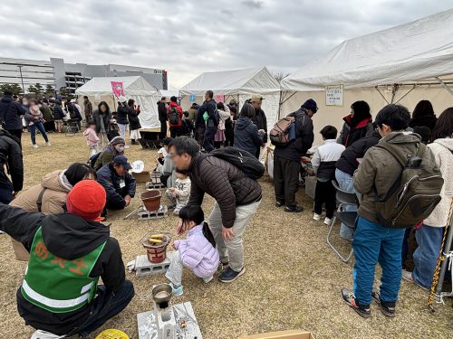 午後からは、ブースに列ができるほどの盛況ぶり。この日は、約100名の方たちに、炭団を知ってもらい、防災について考えてもらうことができました。