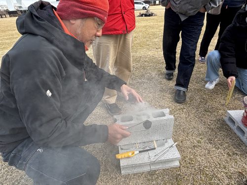 森の会議参加者らで用意した食べ物は、尼崎で釣れた魚の缶詰や非常食用のパン、ドライフルーツ、駄菓子など。食材を温めて、何が美味しいかと皆で楽しみました。“ほか丸ぬく助”の愛称の通り、炭団には、ほかほかするぬくさがあり、食べ物だけでなく、人も温まりに集まっていました。